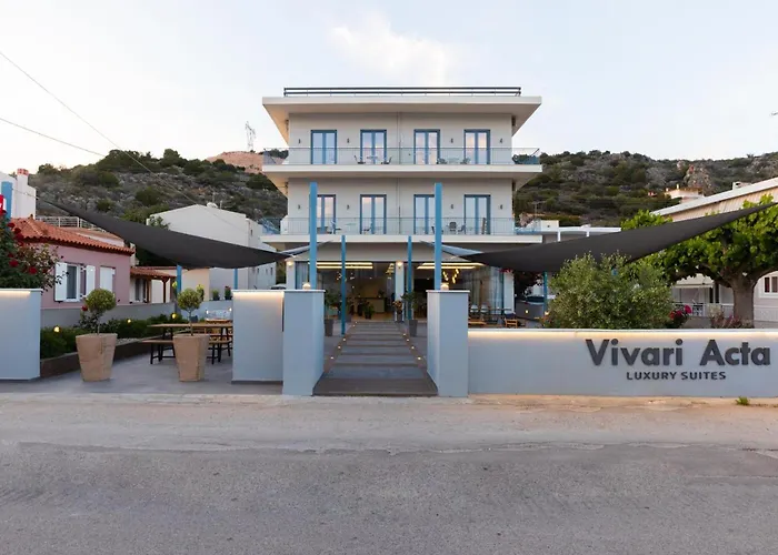 Estando a poco más de 5 minutos a pie de la Playa de Vivariou, el hotel Vivari Acta, de 3 estrellas, cuenta con un museo arqueológico. Los huéspedes que se alojen en el hotel pueden aparcar su coche en las instalaciones.